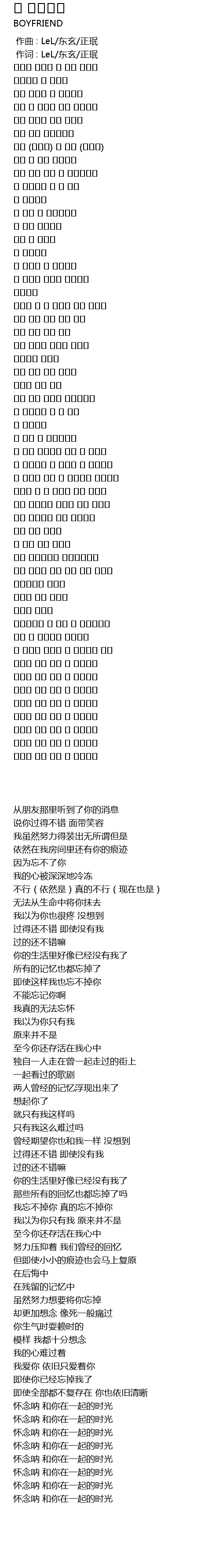 | [01:38.460] | 나도 모르게 둘만의 추억들 |