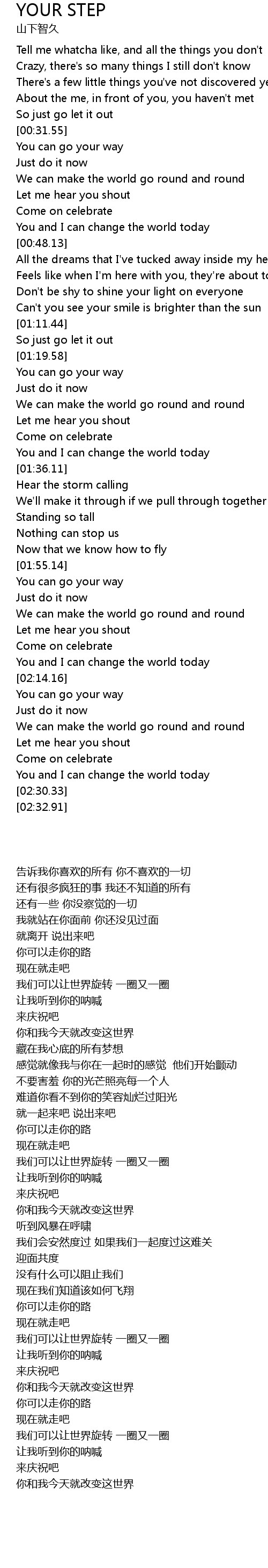 | [02:26.83] | You and I can change the world today |