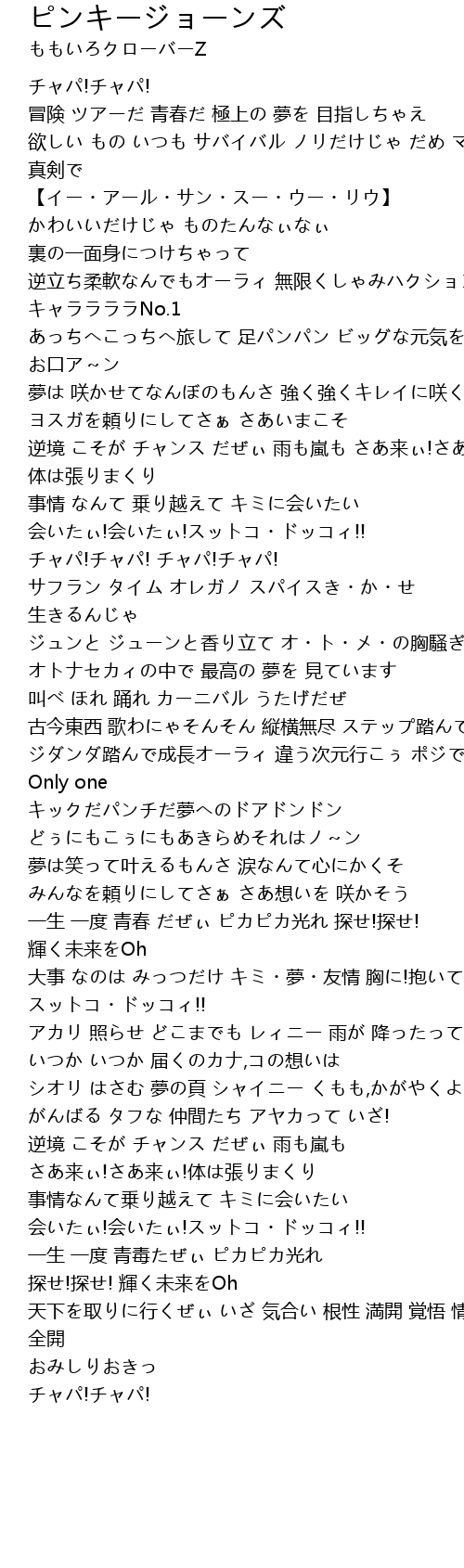 | Song | ピンキージョーンズ |