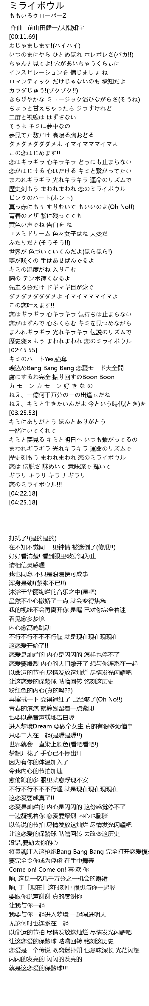 | [02:37.73] | 歴史変えよう まわれまわれ 恋のミライボウル |