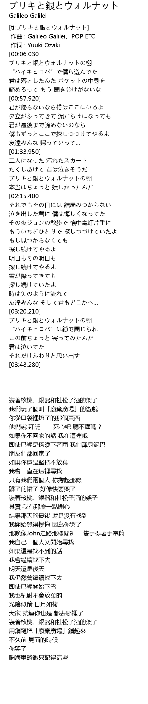 | [00:00.00] | zuo qu : Galileo Galilei POP ETC |