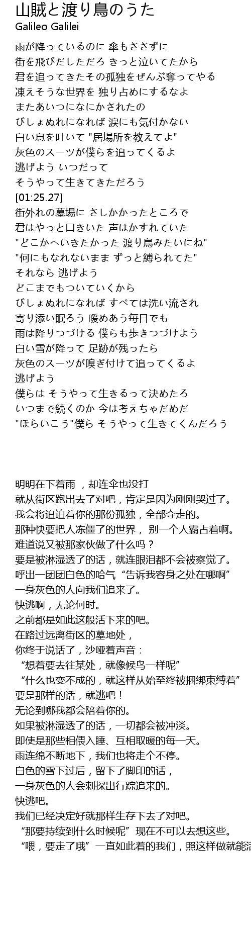 | [02:09.31] | "どこかへいきたかった 渡り鳥みたいにね" |