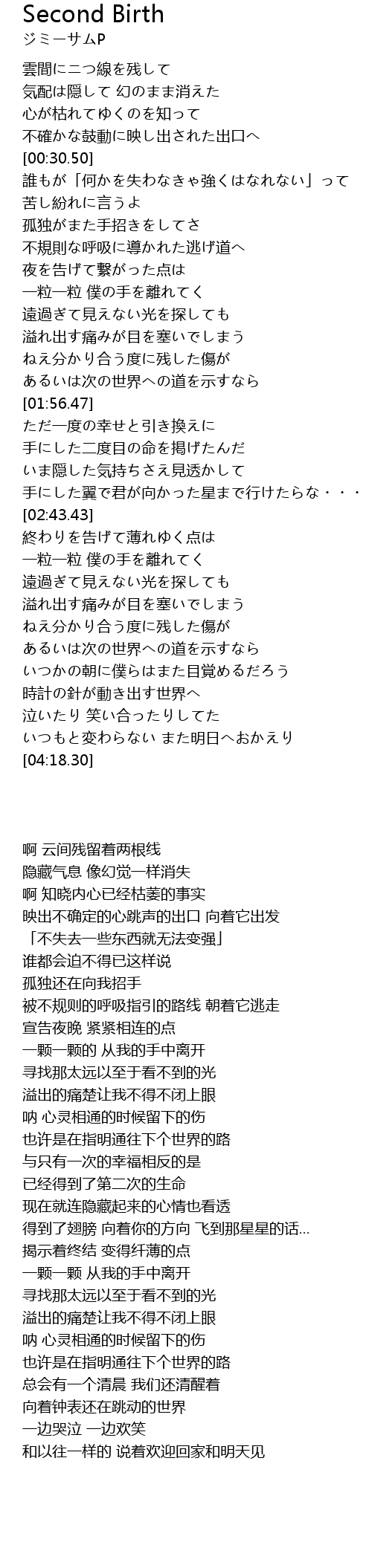 | [02:16.71] | 手にした二度目の命を掲げたんだ |