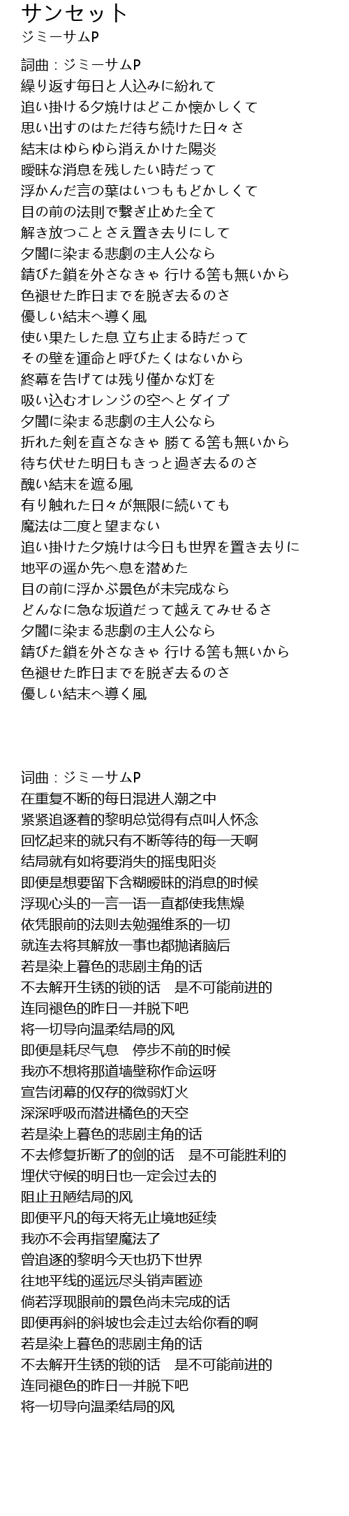 | [03:09.55] | 追い掛けた夕焼けは今日も世界を置き去りに |