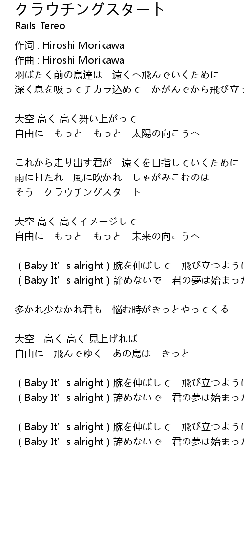 | (Baby It’s alright)諦めないで 君の夢は始まったばかりさ | |