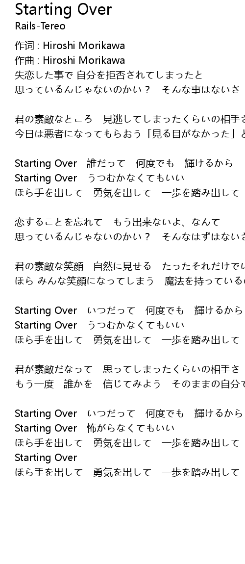 | Starting Over 誰だって 何度でも 輝けるから | |