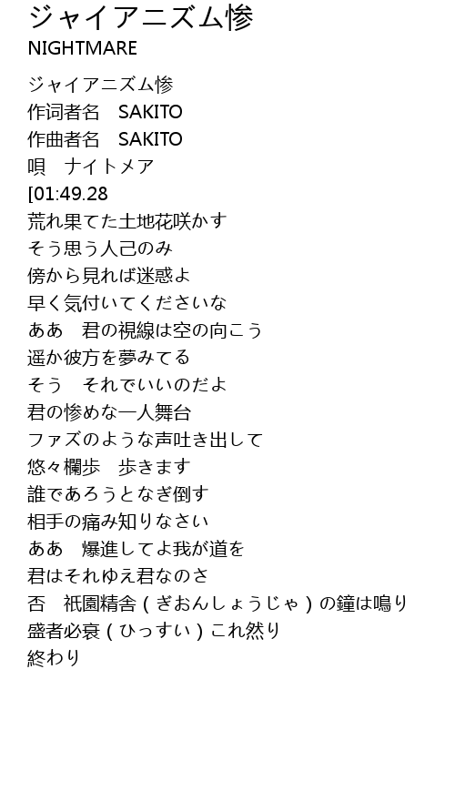 | [01:45.15] | 盛者必衰(ひっすい)これ然り |
