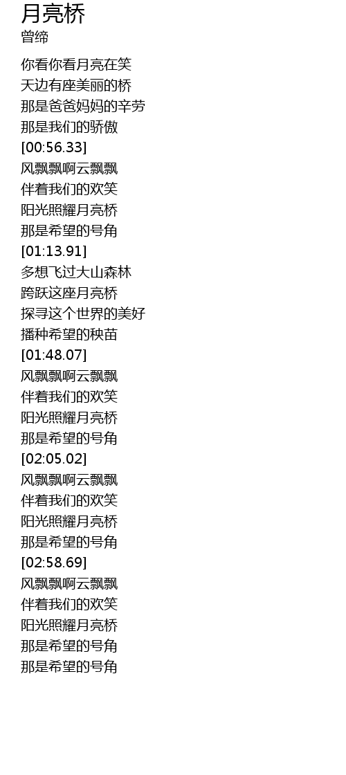 | [01:36.04] | 跨跃这座月亮桥 |