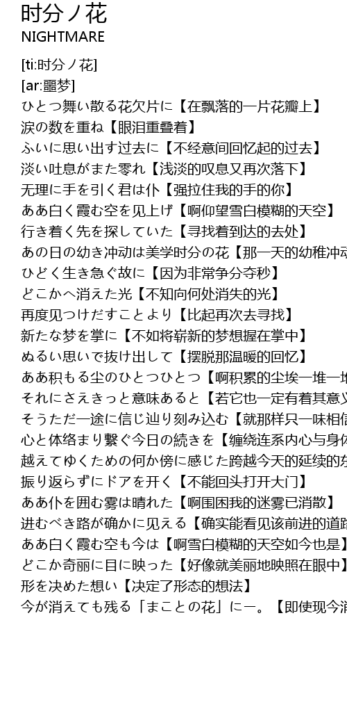 | [01:58.74] | 心と体络まり繋ぐ今日の続きを【缠绕连系内心与身体在身旁感受到 |