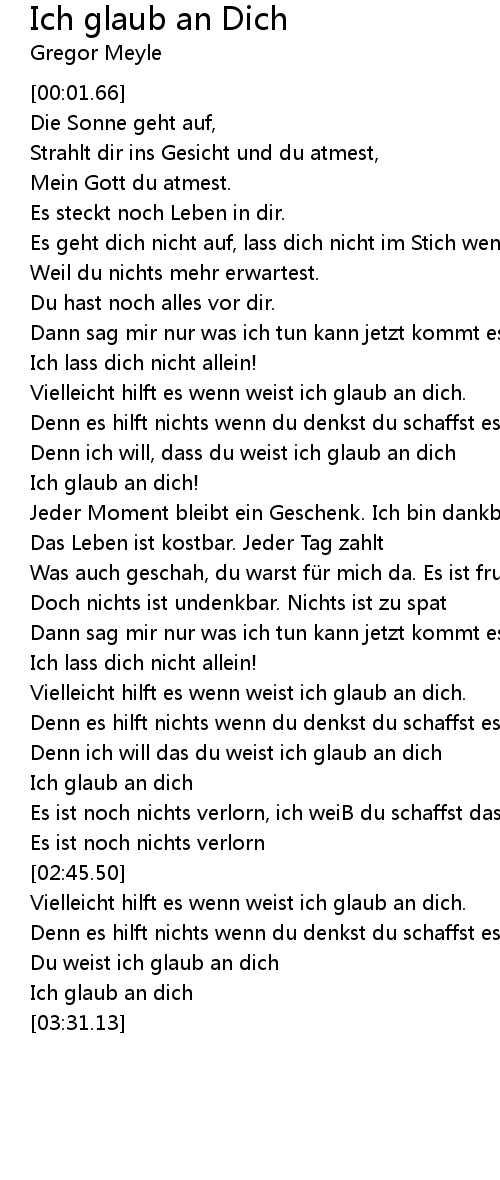| [00:56.18] | Vielleicht hilft es wenn weist ich glaub an dich. |