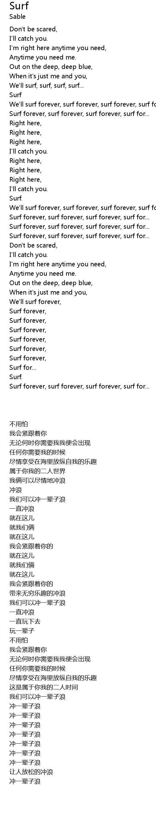 | [02:22.94] | Surf forever, surf forever, surf forever, surf for... |