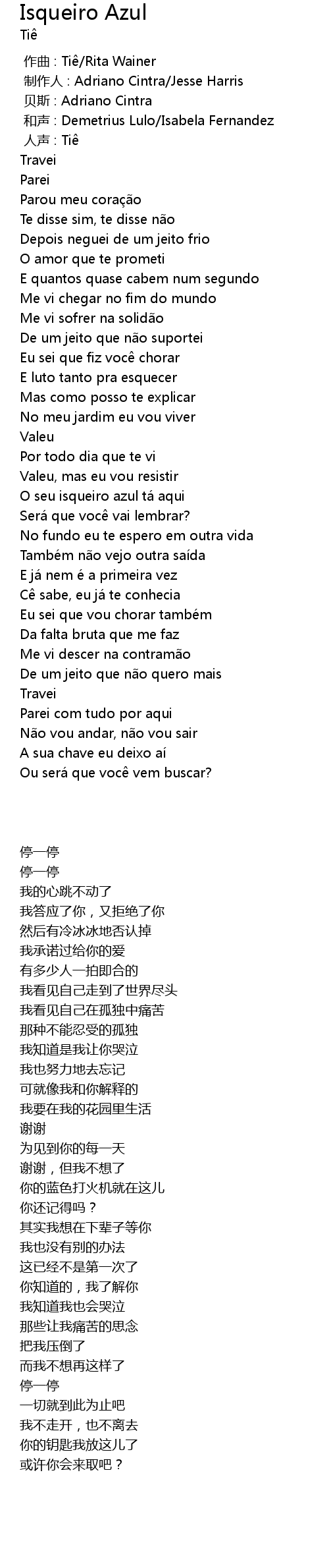 | [00:00.000] | 作曲 : Tiê/Rita Wainer |