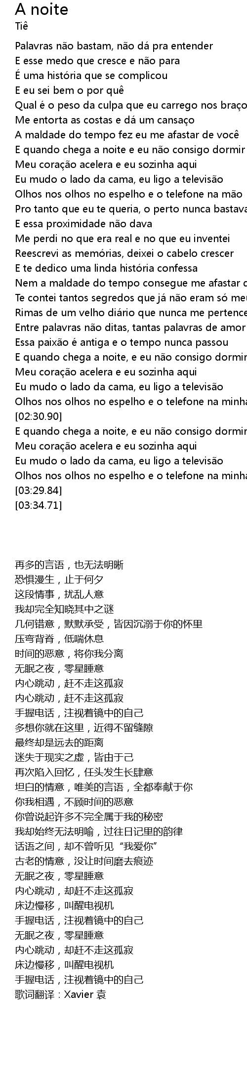 | [00:39.82] | E quando chega a noite e eu não consigo dormir |