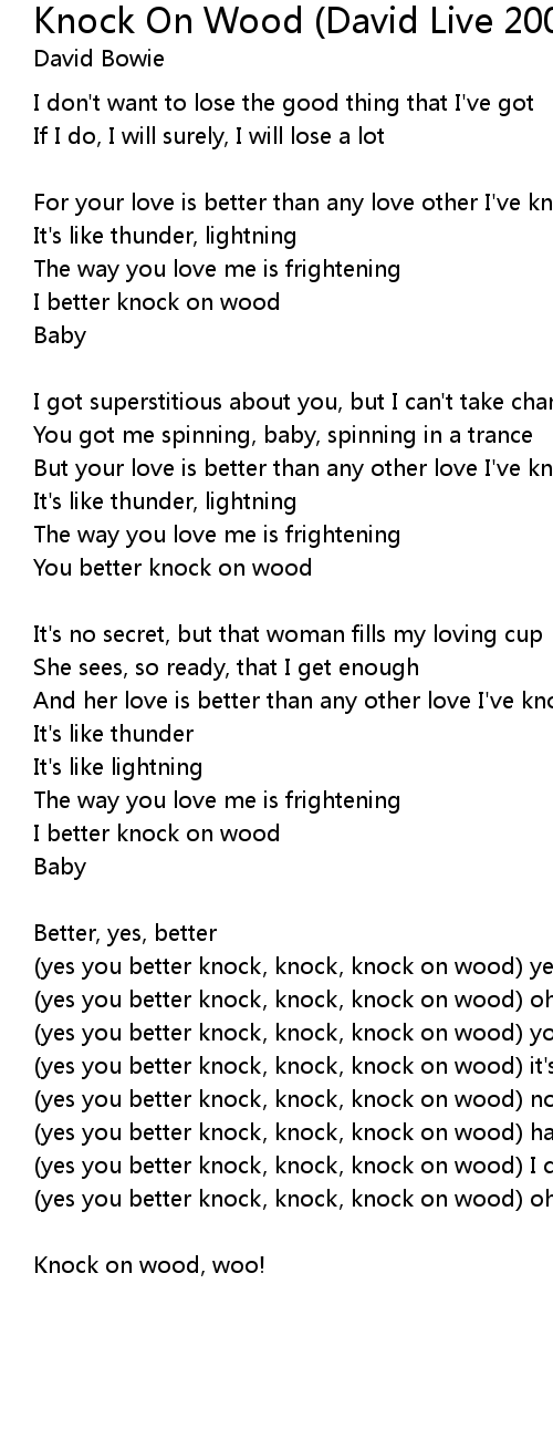 (yes you better knock, knock, knock on wood) oh, knock on wood |