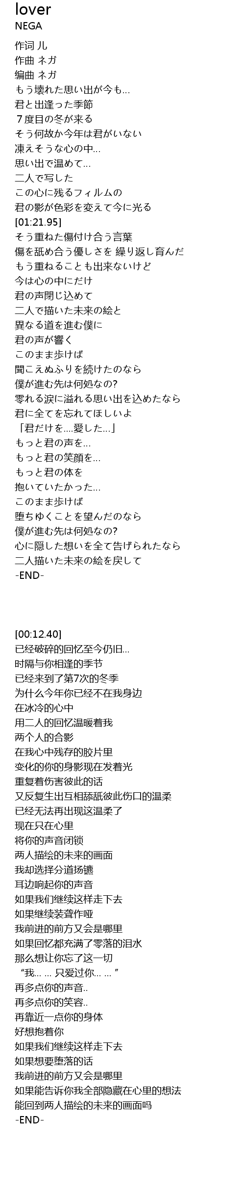 | [00:12.40] | 编曲 ネガ |