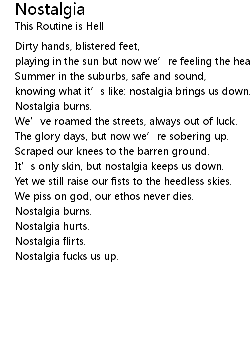 | knowing what it' s like: nostalgia brings us down. | |