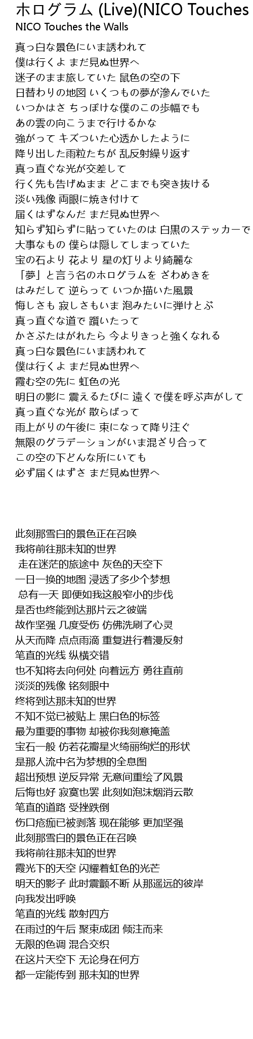 | [01:53.50] | 「夢」と言う名のホログラムを ざわめきを |
