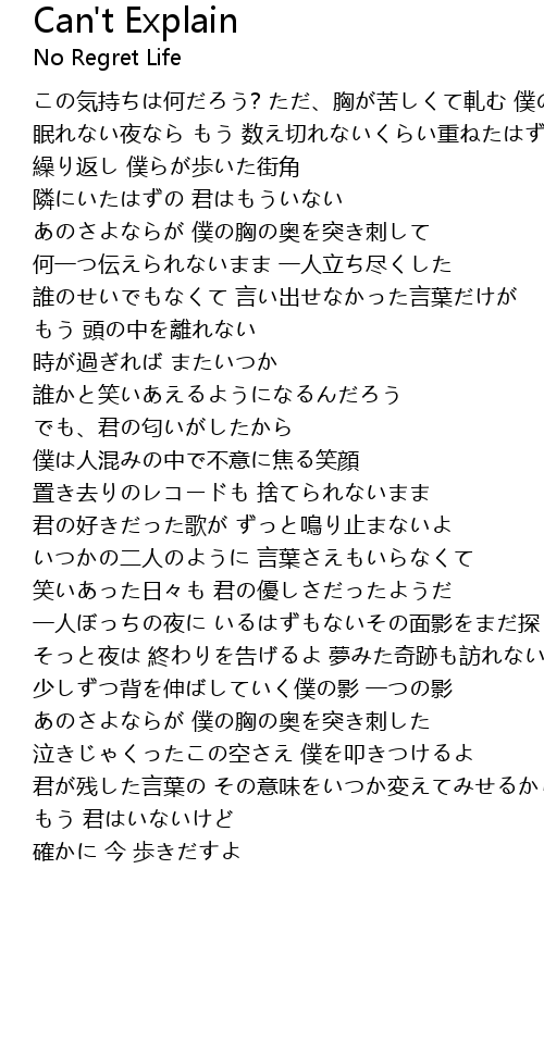 | 君の好きだった歌が ずっと鳴り止まないよ | |
