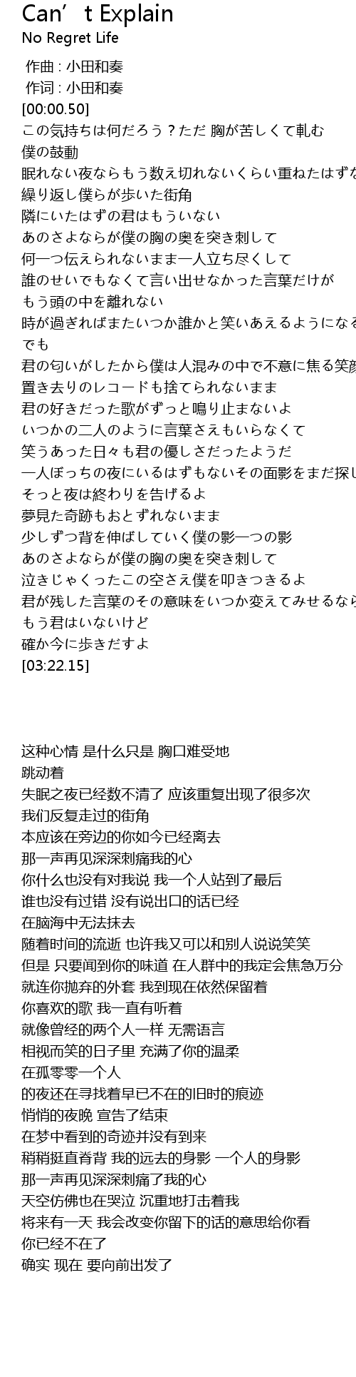 | [00:59.54] | 何一つ伝えられないまま一人立ち尽くして |