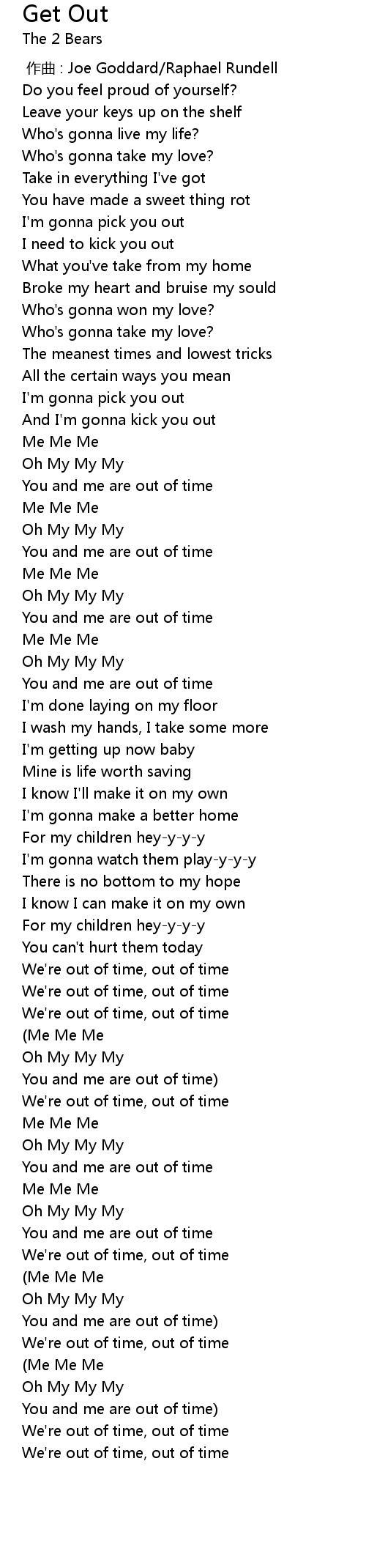 | [02:38.00] | We' re out of time, out of time |