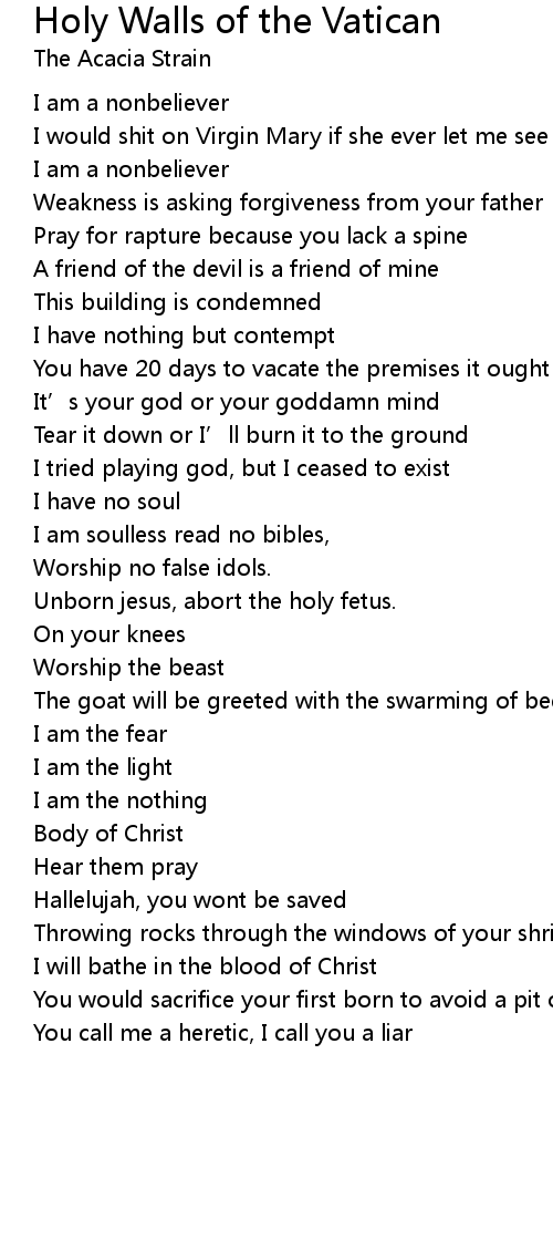 | Song | Holy Walls of the Vatican |