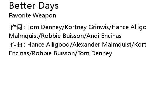 | [00:00.000] | 作曲 : Hance Alligood/Alexander Malmquist/Kortney Grinwis/Andi Encinas/Robbie Buisson/Tom Denney |