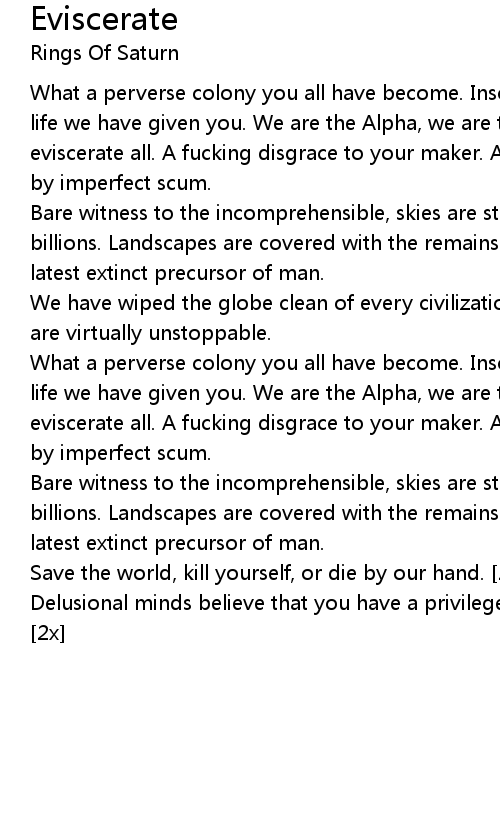 What a perverse colony you all have become. Insolent scum, ungrateful of the life we have given you. We are the Alpha, we are the Omega, we are here to eviscerate all. A fucking disgrace to your maker. A celestial presence, not seen by imperfect scum. |
