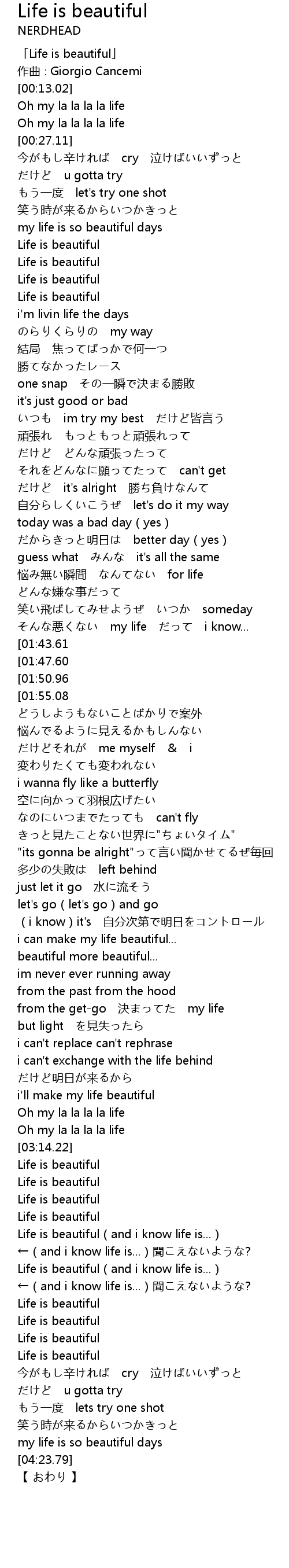 | [01:59.54][01:43.61] | Life is beautiful and i know life is... |