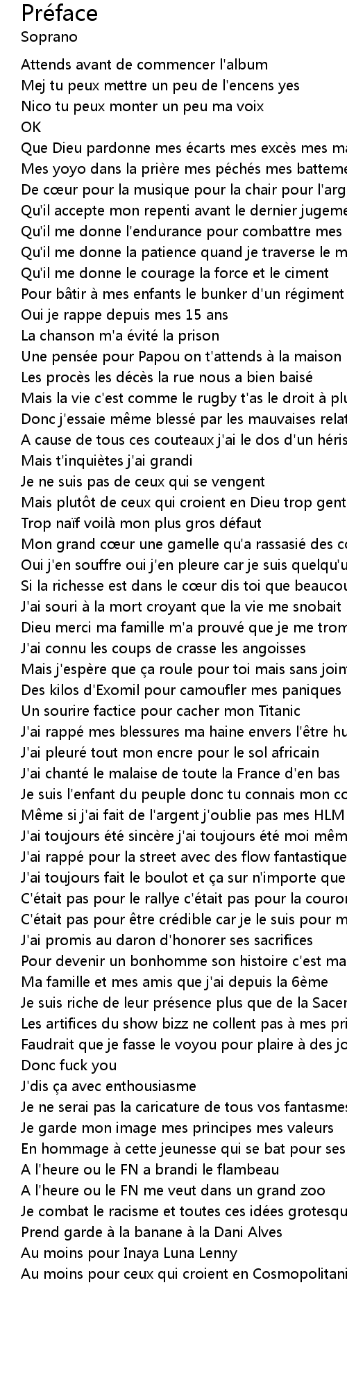 | [01:55.56] | C'e tait pas pour tre cre dible car je le suis pour ma daronne |