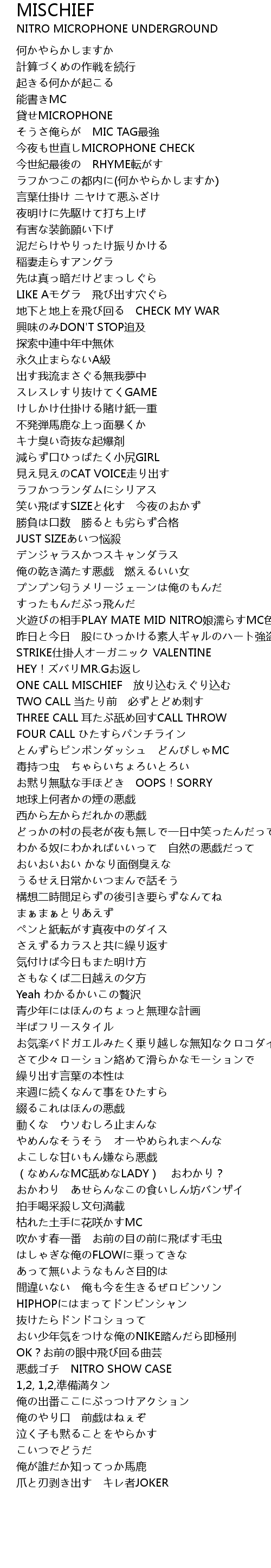 | Album | NITRO MICROPHONE UNDERGROUND |