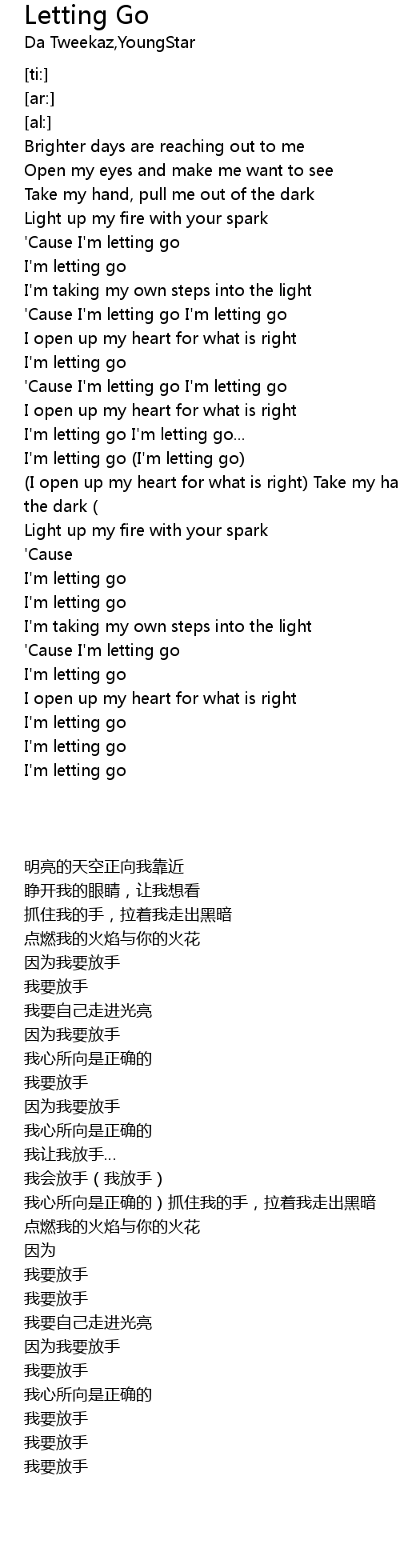 | [01:17.51] | ' Cause I' m letting go I' m letting go |