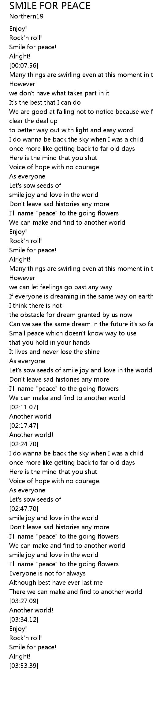 SMILE FOR PEACE Lyrics