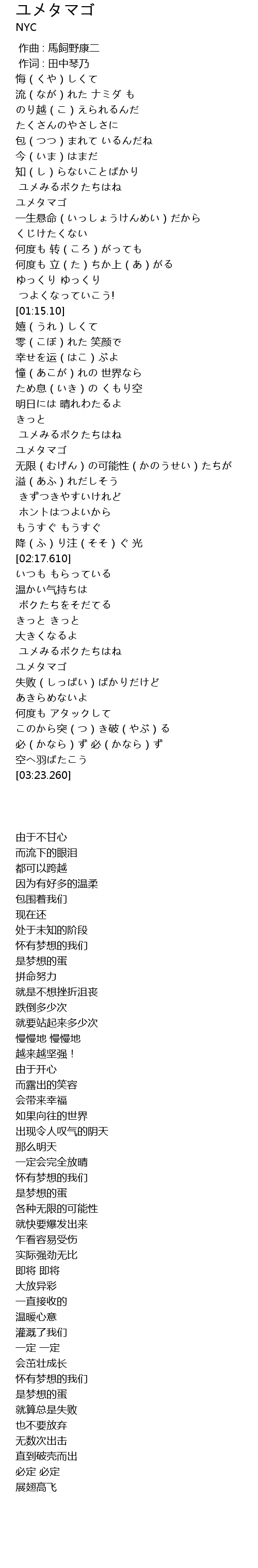 | [02:56.270] | ユメタマゴ |