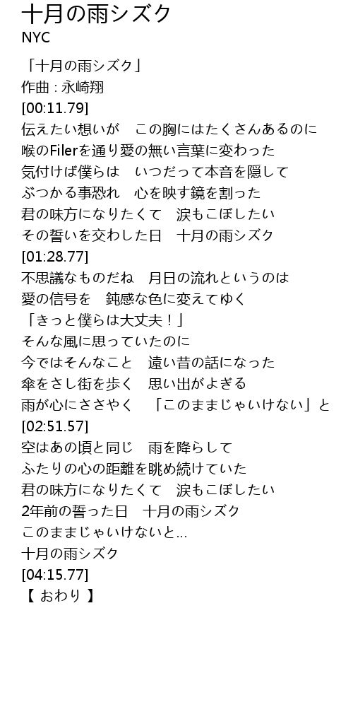 | [00:03.79] | 「十月の雨シズク」 |