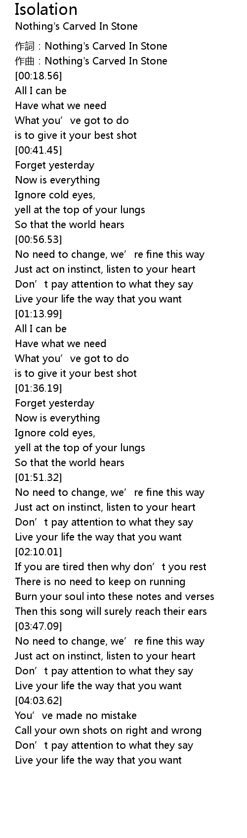 | [00:17.34] | zuò cí: Nothing' s Carved In Stone |