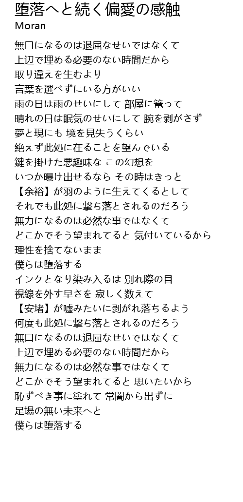 | [03:44.73] | 恥ずべき事に塗れて 常闇から出ずに |