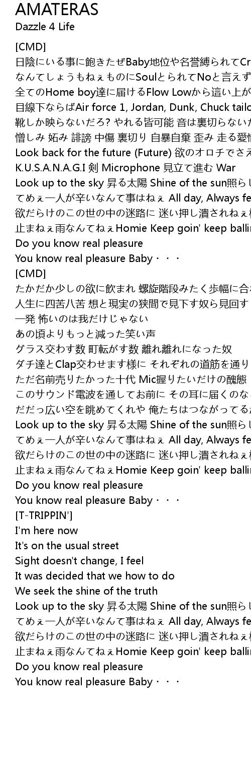 | てめぇ一人が辛いなんて事はねぇ All day, Always feel so high | |