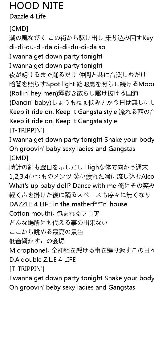 | Keep it ride on, Keep it Gangsta style 流れる西の音色に揺られな | |
