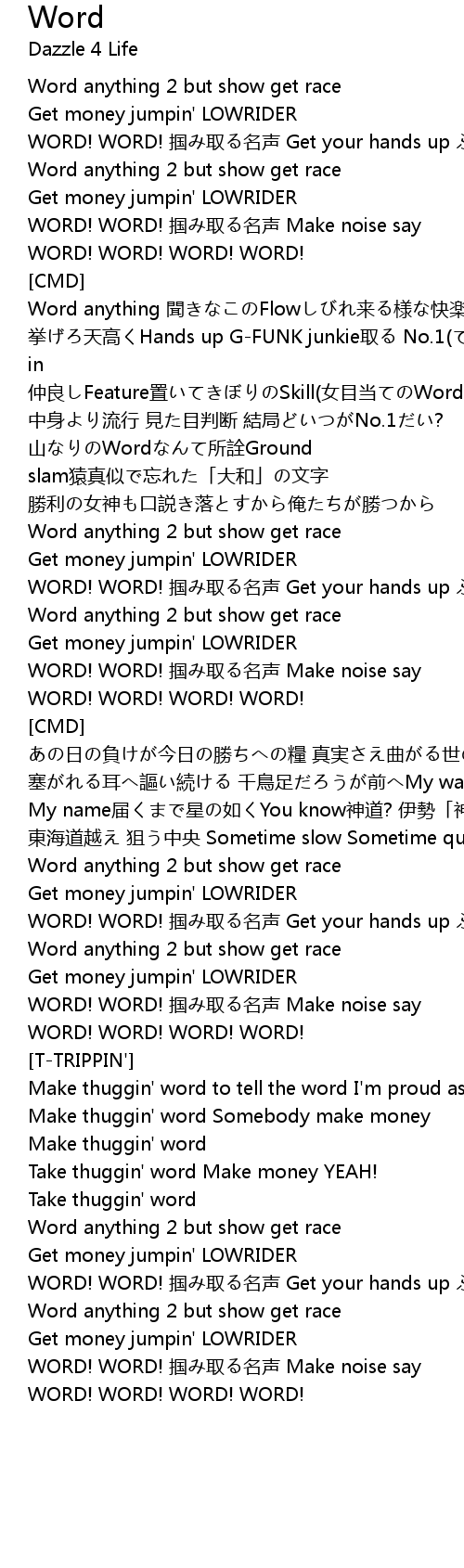 | WORD! WORD! guāi qǔ míng shēng Get your hands up míng yán | |