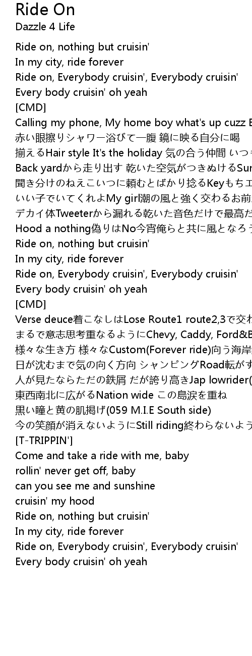 | Ride on, Everybody cruisin', Everybody cruisin' | |