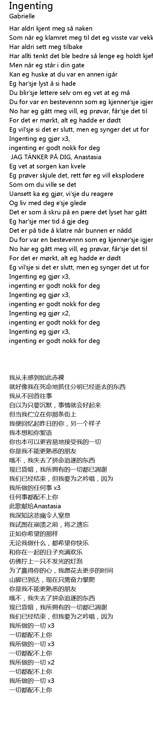| [00:38] | Har allti tenkt det ble bedre s lenge eg holdt kjeft |