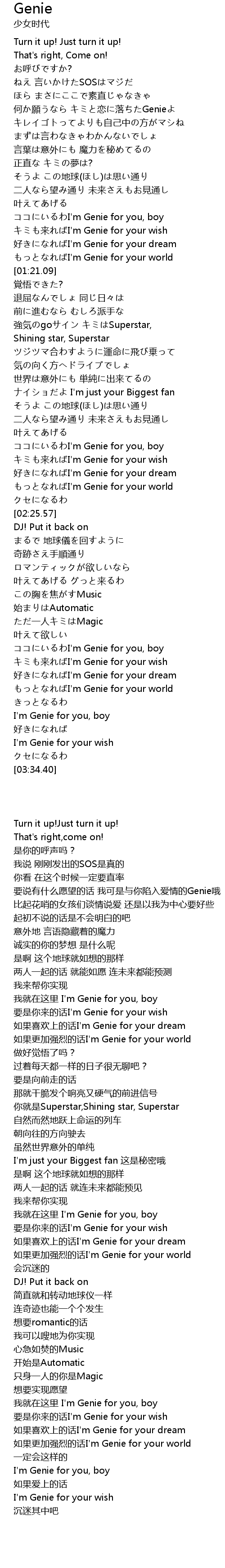 | [03:14.35] | hǎo I' m Genie for your dream |