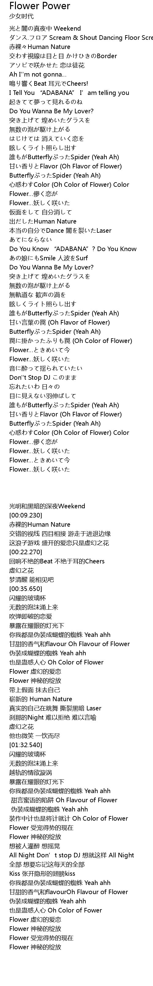 | [02:15.540] | Flower…ときめいて今 |