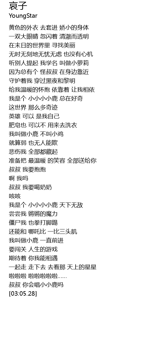 | [01:46.31] | 我是个 小小小小鹿 天下无敌 |