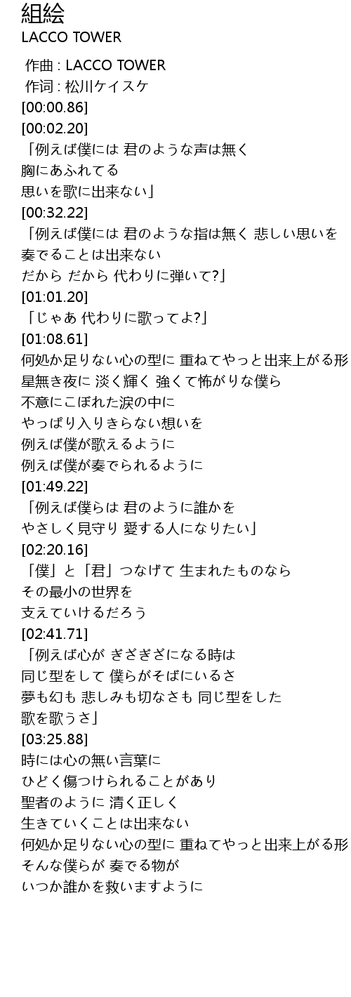 | [00:00.00] | 作曲 : LACCO TOWER |