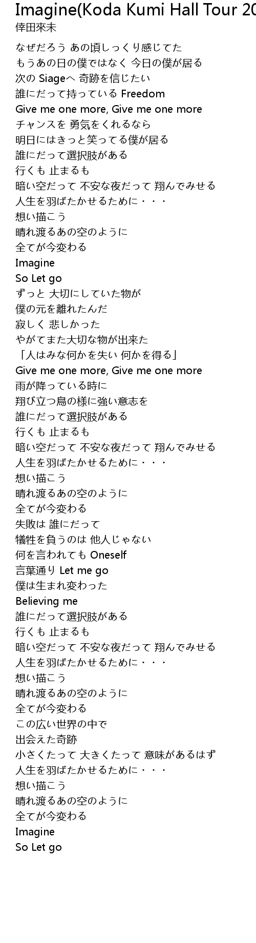 | Song | Imagine(Koda Kumi Hall Tour 2014~Bon Voyage~) |