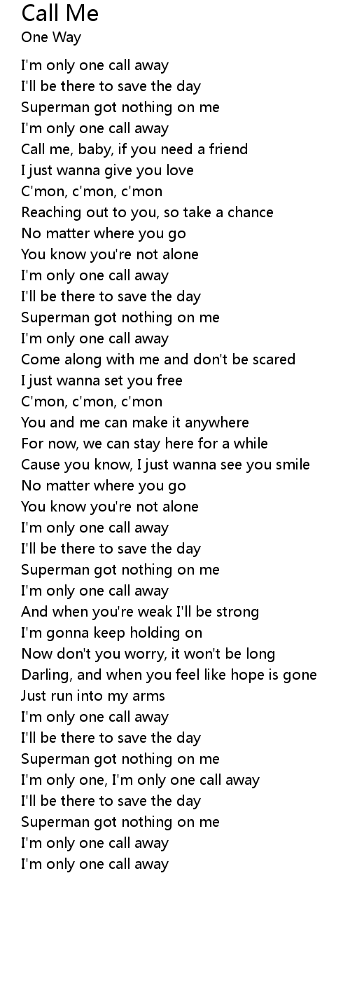 | I'm only one, I'm only one call away | |