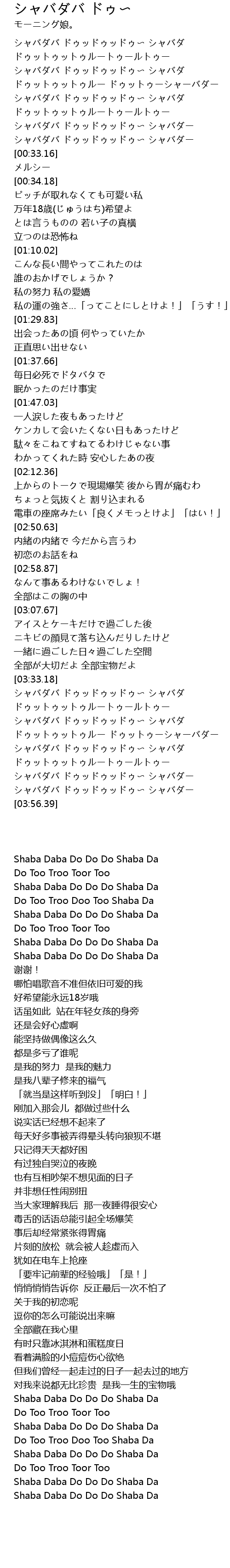 | [00:16.62] | シャバダバ ドゥッドゥッドゥ〜 シャバダ |