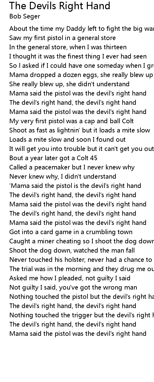 | [00:42.82] | Mama said the pistol was the devil's right hand |