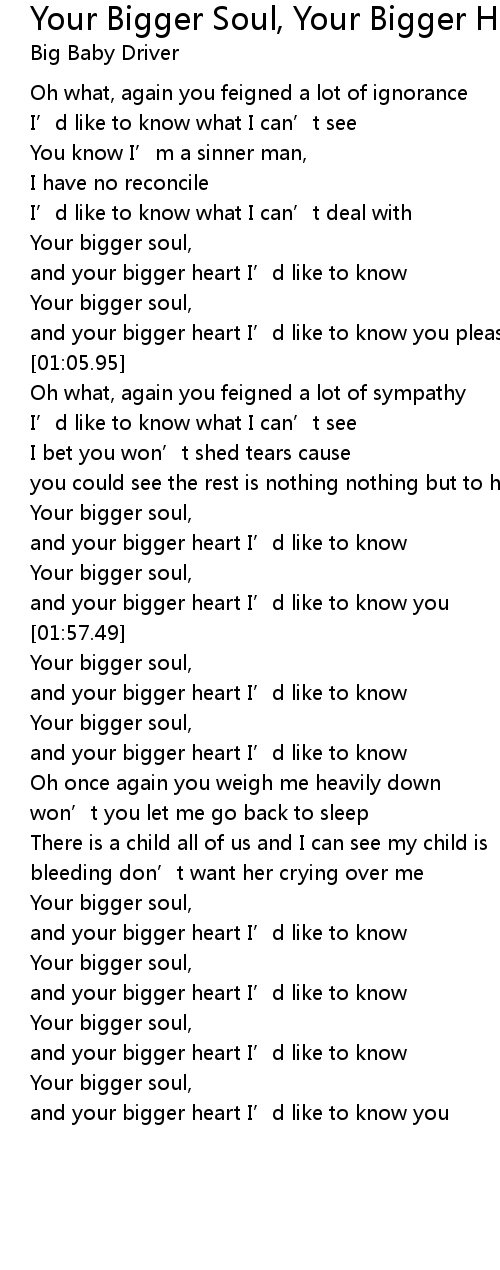| [00:54.70] | and your bigger heart I’d like to know you please. |